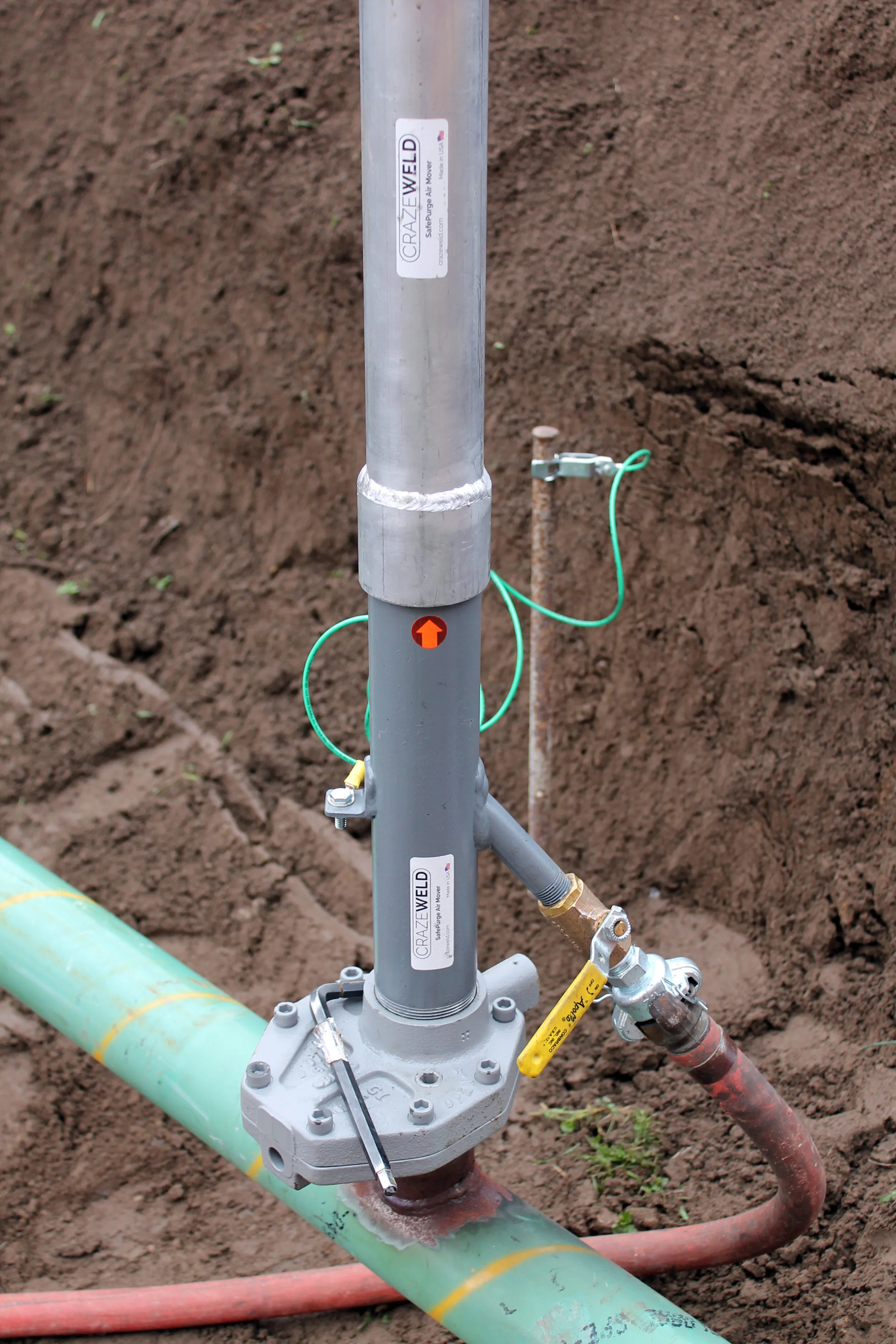 The SafePurge Air Mover is the only air moving device available to the gas industry that has a positive threaded connection to a controlled shut off. The venturi-style purging device allows for ignitable or explosive gasses to be “pulled” from an isolated pipeline without the chance of ignition or introducing pressure on the stopping device. The SafePurge Air Mover is a manufactured quality tested device.